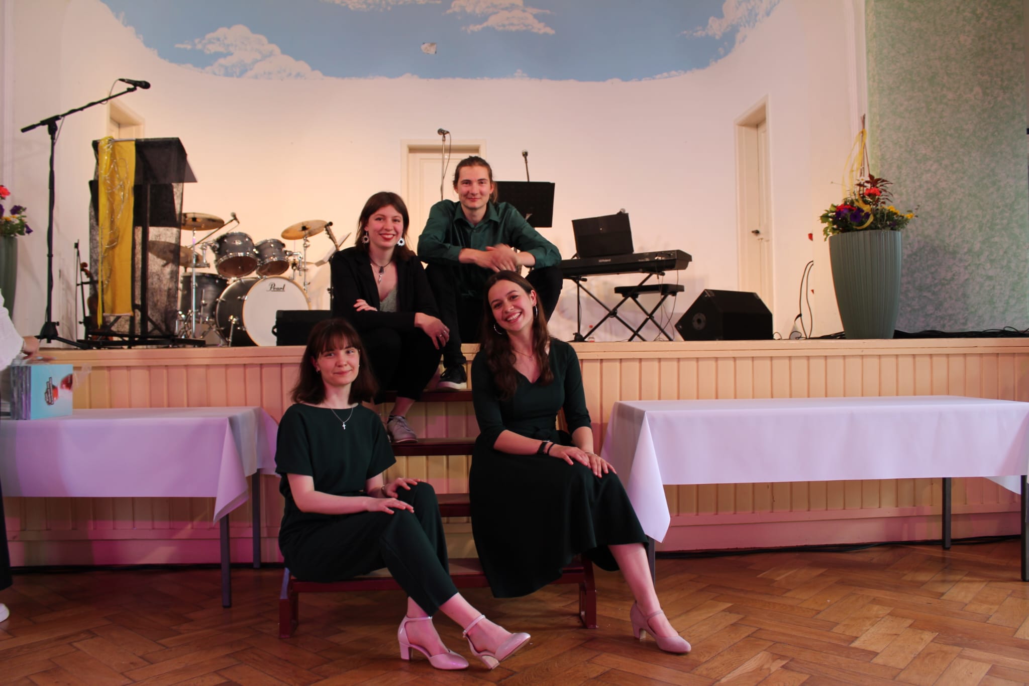 Wir sind die Band Hausgemacht. Für euch spielen, Marlene, Melinda, Robert und Lieselotte.