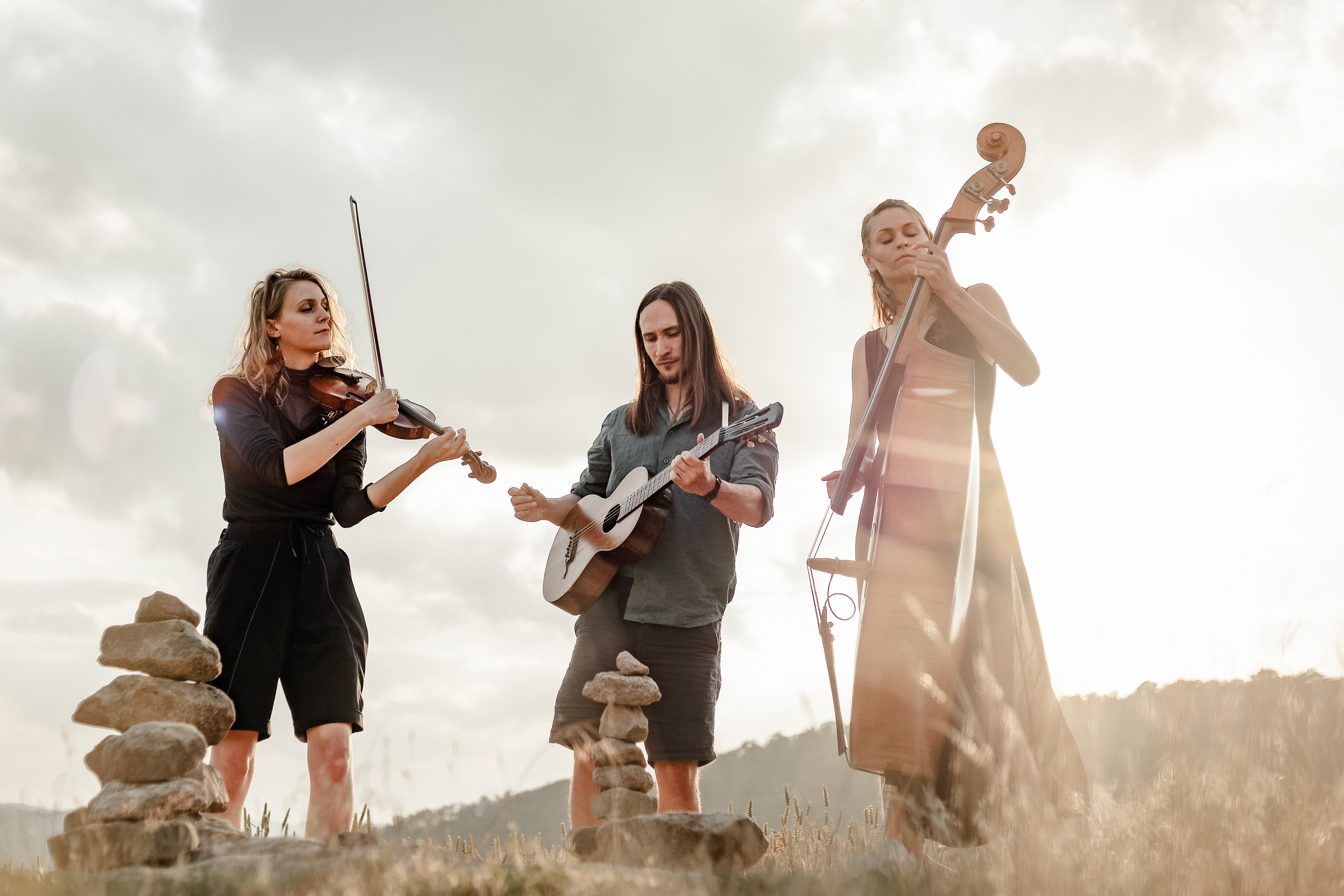 Dass wir uns überhaupt gefunden haben finden wir schon sehr besonders, wo wir doch aus sehr unterschiedlichen Richtungen kommen: Isa ist klassisch ausgebildete Geigerin die viel Struktur (und auch Drill) abbekommen hat, gerne in's Detail geht und ein super solides Gehör entwickelt hat. Felix ist durch-und-durch Autodidakt der am liebsten den ganzen Tag verrückte Läufe üben und sich spannende Akkordfolgen und Riffs ausdenken würde wenn er die Zeit dazu hätte (wobei die Zeit um Felix herum irgendwie meistens langsamer und entspannter zu vergehen scheint...). Und Theresa ist eine richtig freie Seele, die sich ungern in irgendwas reinzwängen lässt, Stimm-Impro und -Freestyle liebt und die erste ist, die sagt: "das passt so, lass einfach machen".